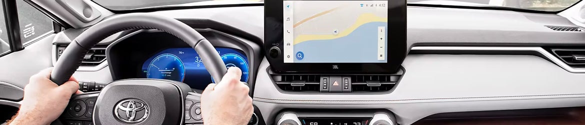 Step inside the 2024 RAV4 and be greeted by an oasis of comfort and luxury. The interior, with its premium materials and ergonomic design, offers a serene environment. Available features like the panoramic glass roof, ventilated and heated front and rear seats, and the 10.5-inch Toyota Audio Multimedia touchscreen elevate the in-cabin experience. The RAV4's interior creates a space where you and your passengers alike can relax and enjoy the journey.