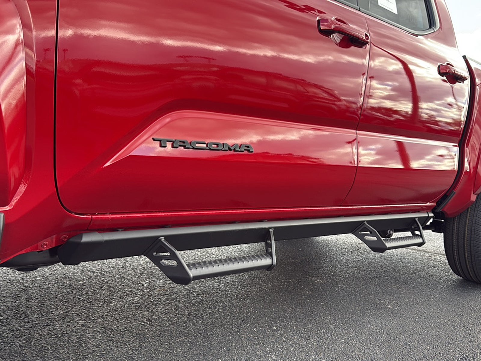 - the predator tube step complements the Tacoma's rugged design and improves access to the cab.