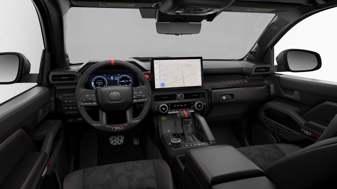 - Gloss-black "TOYOTA" heritage grille, mirror caps, door handles, overfenders and rear spoiler; "TRD PRO" hood badge and stamped liftgate