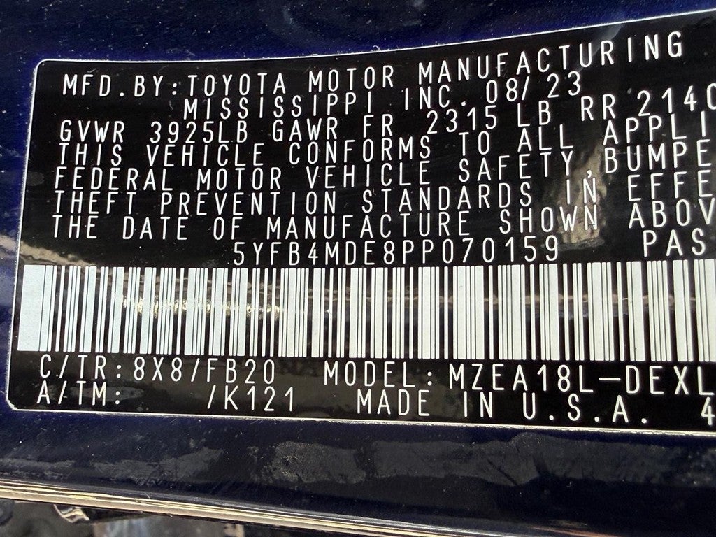 Introducing the 2023 Toyota Corolla LE CVT, a perfect blend of style and efficiency. This stunning vehicle features a captivating medium blue exterior that is sure to turn heads, complemented by a sleek black interior that exudes sophistication. Under the hood, the Corolla LE is powered by a Dynamic Force 2.0L I-4 engine, equipped with port and direct fuel injection. This innovative technology not only enhances performance but also ensures optimal fuel efficiency, providing an impressive 169 horsepower for a dynamic driving experience. The continuously variable transmission (CVT) offers seamless acceleration and exceptional responsiveness, making it an ideal choice for both city driving and highway cruising. With its well-designed interior, practical features, and advanced safety technology, the 2023 Corolla LE ensures the utmost comfort and confidence for every journey. Whether you are commuting to work or embarking on a weekend getaway, this reliable and stylish vehicle meets all your driving needs. Experience the perfect balance of performance, comfort, and reliability with the 2023 Toyota Corolla LE CVT. Don't miss your chance to own this exceptional automobile!