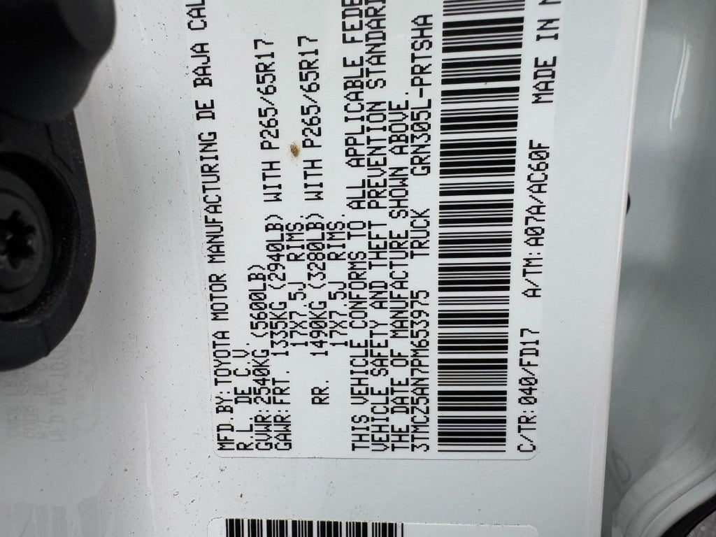 Introducing the 2023 Toyota Tacoma TRD Sport, an exceptional pickup designed for both performance and versatility. This double cab model features a stunning white exterior complemented by a sleek black interior, creating a striking aesthetic. Equipped with a powerful 3.5L V6 engine, the Tacoma delivers an impressive 278 horsepower, ensuring robust performance whether you're tackling tough terrains or navigating urban roads. The advanced port and direct injection system, along with dual overhead camshaft (DOHC) and variable valve control technologies, underscore Toyota's commitment to engineering excellence and fuel efficiency. The Tacoma TRD Sport is not just about power; it also offers a host of modern features that enhance your driving experience. The 5-foot bed provides ample cargo space, making it ideal for both work and play. With its durable build and advanced safety features, this truck is designed to handle your demands, whether on the worksite or during weekend adventures. Elevate your driving experience with the 2023 Toyota Tacoma TRD Sport-where capability meets style. Don't miss the opportunity to make this remarkable vehicle your own.